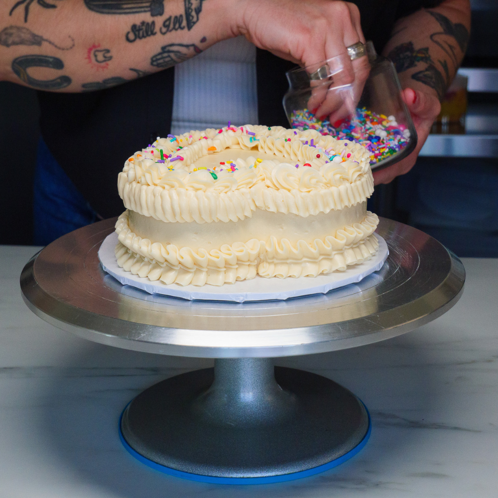 "We loved our cake! We selected a vanilla cake with vanilla buttercream frosting for one layer and a marble cake with hazelnut filling and buttercream frosting for the other two layers. Everyone loved the cake, it was delicious without being overly sweet and it was beautiful! The team was very easy to work with and very responsive." -AJ J.