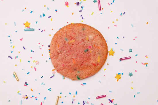 Our Pink Chip is a hybrid of our Pink Cookie and a classic chocolate chip cookie... perfectly gooey, made with only the finest chocolate and blended with a dose of sprinkles for extra fun!
