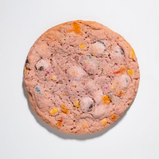Our Pink Chocolate Chip is a hybrid of our signature Pink Cookie and a classic chocolate chip cookie... perfectly gooey, made with only the finest chocolate and blended with a dose of sprinkles for extra fun!