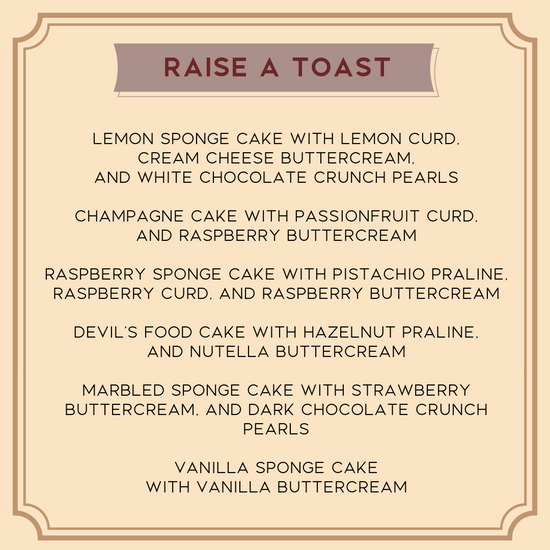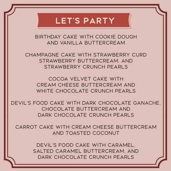 Introducing Layer Bites – our collection of artisanal cake jars, a captivating blend of flavors and textures delivering a heavenly slice of cake. Choose from our thoughtfully crafted boxes, tailored to your palate. More than a treat, Layer Bites are a sneak peek into the centerpiece of your celebration. If you’re interested in ordering a custom cake with us, these serve as a great introduction to our cake composition and style.