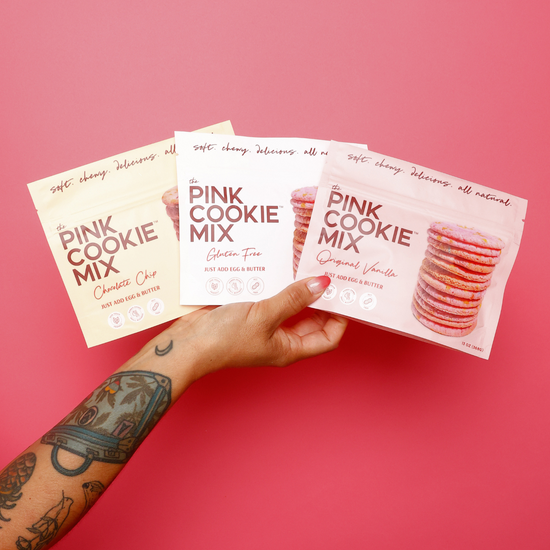 Get ready to treat yourself to oven-fresh pink cookies (FKA pinklepuff), our signature cookie, made by you in your own home, anywhere in the US! Maybe it’s a special occasion, ladies’ night, bro’s night, a fun activity to do with your kids, or you have the munchies...Fill your kitchen with the scent of home-baked pink cookies in minutes and enjoy!